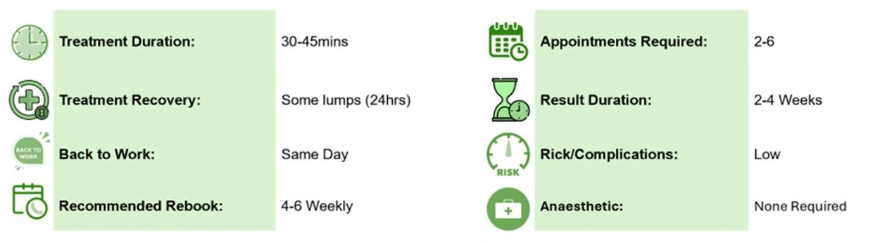 Fat Dissolving Injections work by breaking down the membrane of fat cells, which are eventually emptied through the body’s lymphatic system. After about 2-3 weeks, the results will start to kick in and you’ll be able to see the fat reduction.